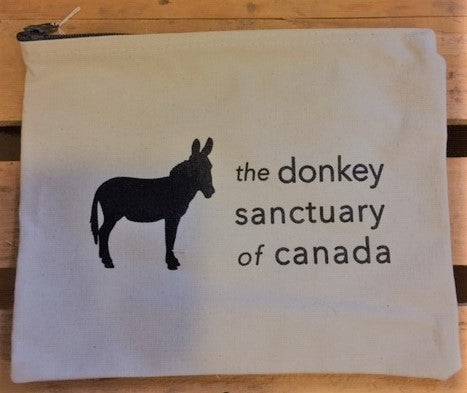 Canvas zippered pouch measures 10 3/4" x 8 3/4".  DSC logo in black on the front, zipper available in red, charcoal and natural.